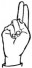 На ћирилици написано ДУШИЦА БЕКОЊА састоји се из 12 слова [?]. Исписано ћириличном једноручном азбуком за глувонеме: